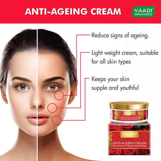 Anti Ageing Cream with extracts of Almonds, Wheatgerm and Rose (150 gms)