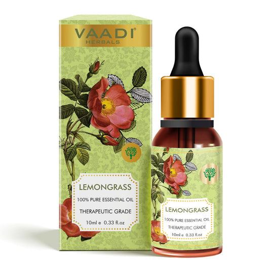 Lemongrass Essential Oil - Reduces Stress & Depression, Prevents Hairfall, Prevents Skin Ageing - 100% Pure Therapeutic Grade (10 ml)
