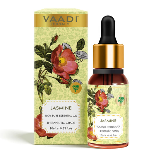 Jasmine Essential Oil - Nourishes Dry & Damaged Hair, Improves Sleep, Uplifts Mood, Reduces Acne & Blemishes - 100% Pure Therapeutic Grade (10 ml)