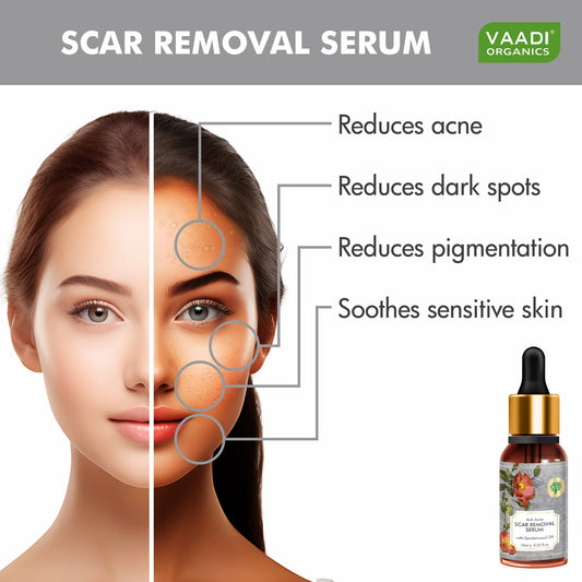 Scar Removal Serum (Pure Mix of Sandalwood Oil, Steam Distilled Neem & Fenugreek Extract) - Reduces Acne, Dark Spots & Pigmentation (10 ml)